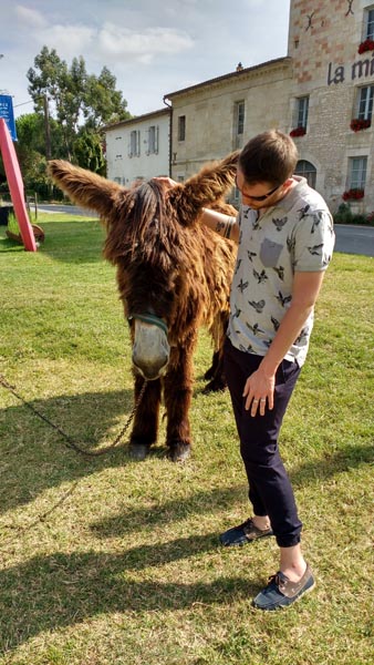 A 12 ans, il est déjà bénévole au sein d’une âsineriequi propose des promenades auprès d’enfants en situation de handicap. Il adopte son premier âne, Cooky. A 18 ans, il travaille plusieurs mois au sein d’une ferme pédagogique franco-américaine. Il est chargé de tenir les lieux en leur absence : soin aux animaux, entretien, traite des chèvres...